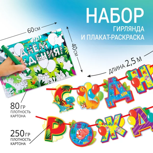 Гирлянда и плакат-раскраска «Диномир»0 заказов |